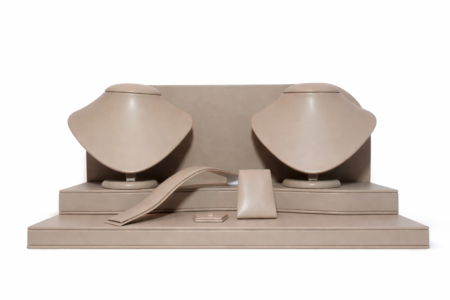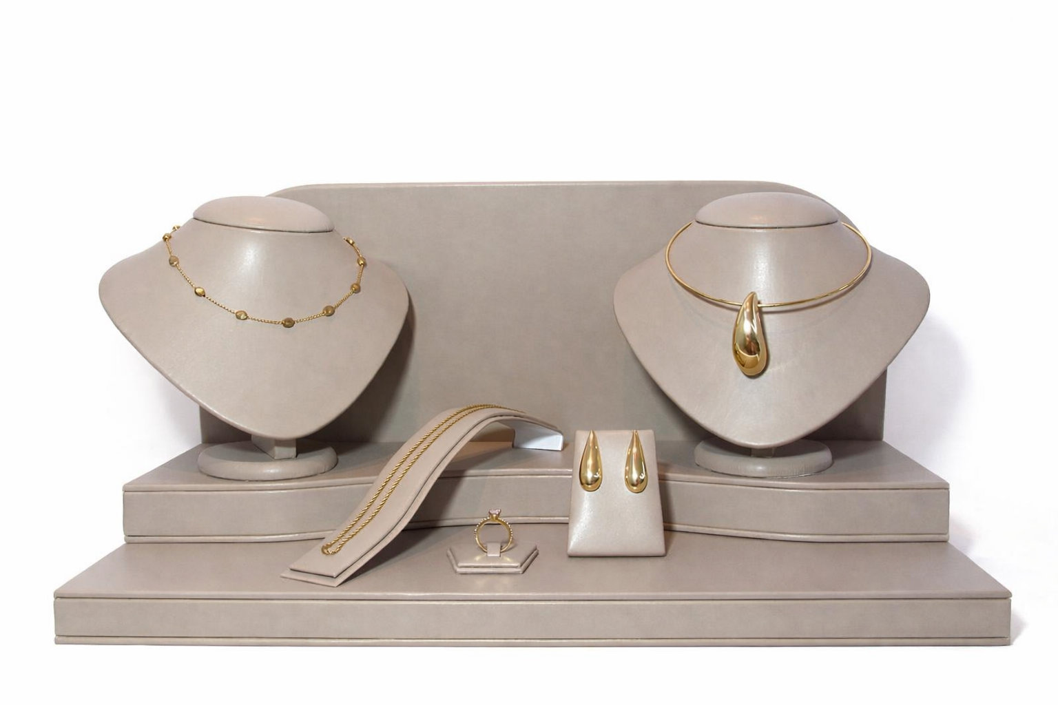 3 módulos, 2 busto (16×9,5×14,5), 1 expositor pulseira estendida, 1 expositor brinco e 1 expositor anel.