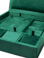 Dividido 5 espaços, 1 espaço para colar, 2 espaços para brinco lapela, 1 espaço para trio de brincos espaço para anéis.