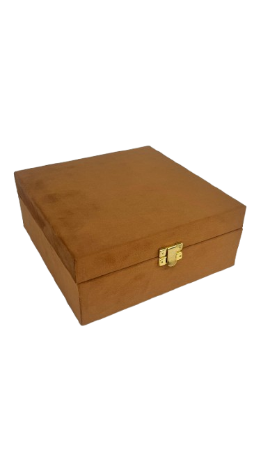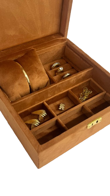 Porta-joias revestido em suede.